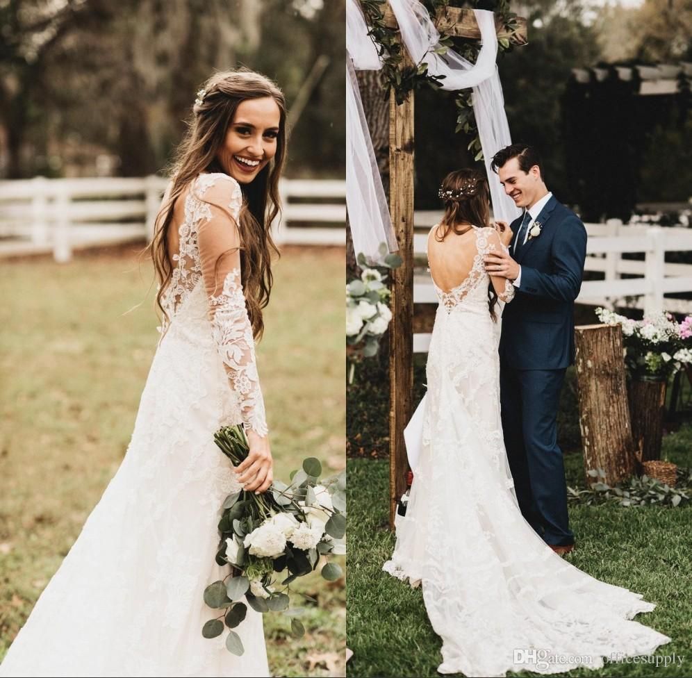 Long Sleeve Country Wedding Dresses Backless Fall Wedding Dress