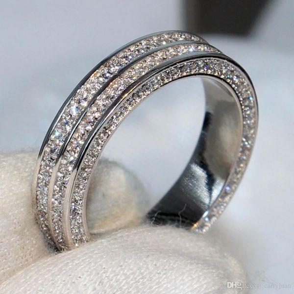 Hid Platinum Round Double Row Pave Diamond Eternity Wedding Band